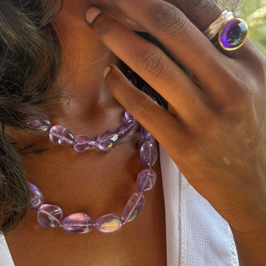 Our gem strands are made using rare and unique natural gemstones that showcase the most gorgeous colours of Mother Nature’s pallet. Beautifully tactile and individually elegant, our gem strands are all hand knotted fitted with our own handmade 'double snake' clasp in sterling silver unless strung as a 'continuous' strand. Send us a a message if you would like a piece to be customised for you.