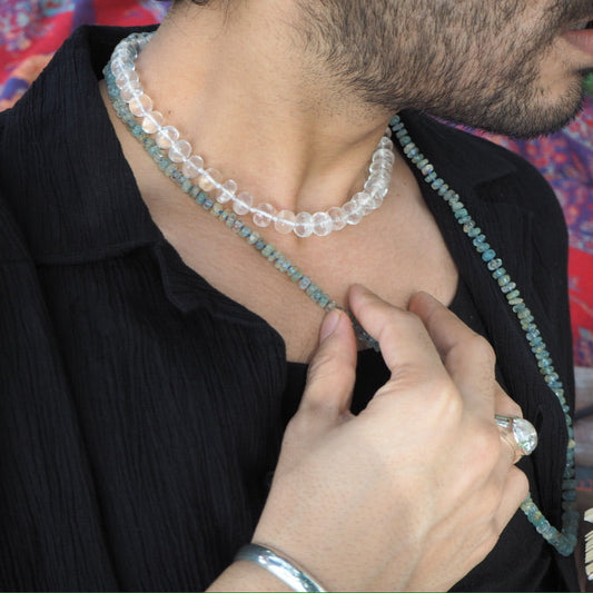 Long Strand of Natural Rock Crystal Batti Shaped Beads.