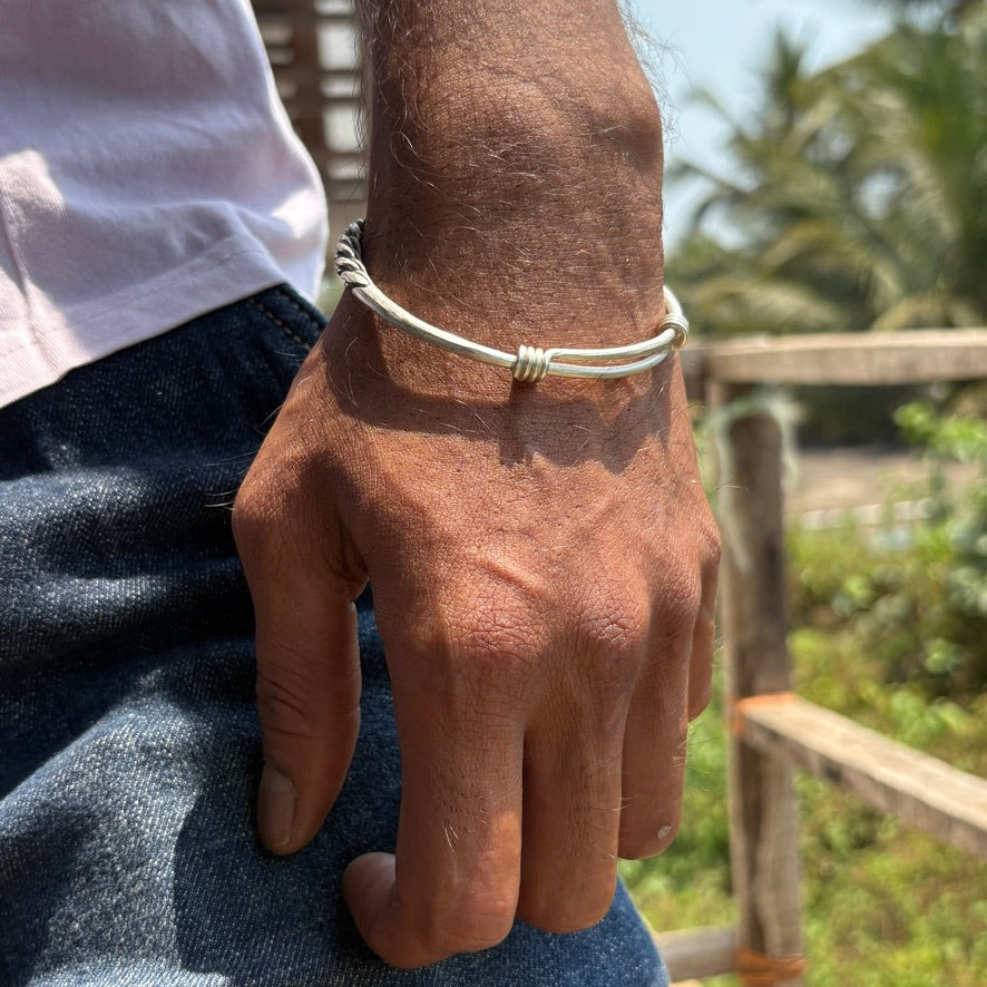 Hand-crafted in sterling silver, this woven cuff adds a touch of unique style to any outfit. A great daily wear piece that will gather a patina as unique as your journey. With it's adjustable bangle design this piece is perfect for both men and women, it's the ideal gift for the fashion-forward man in your life. With an adjustable fit, this versatile piece sure to become a go-to accessory.
